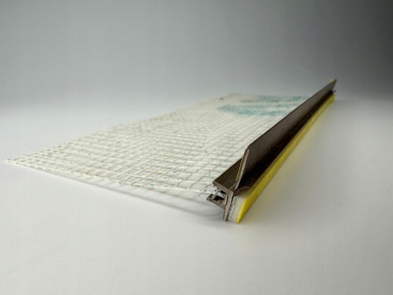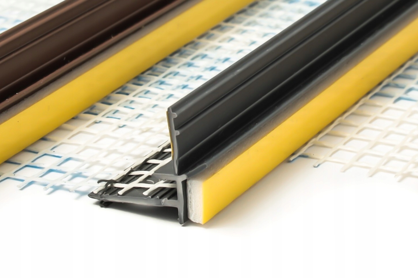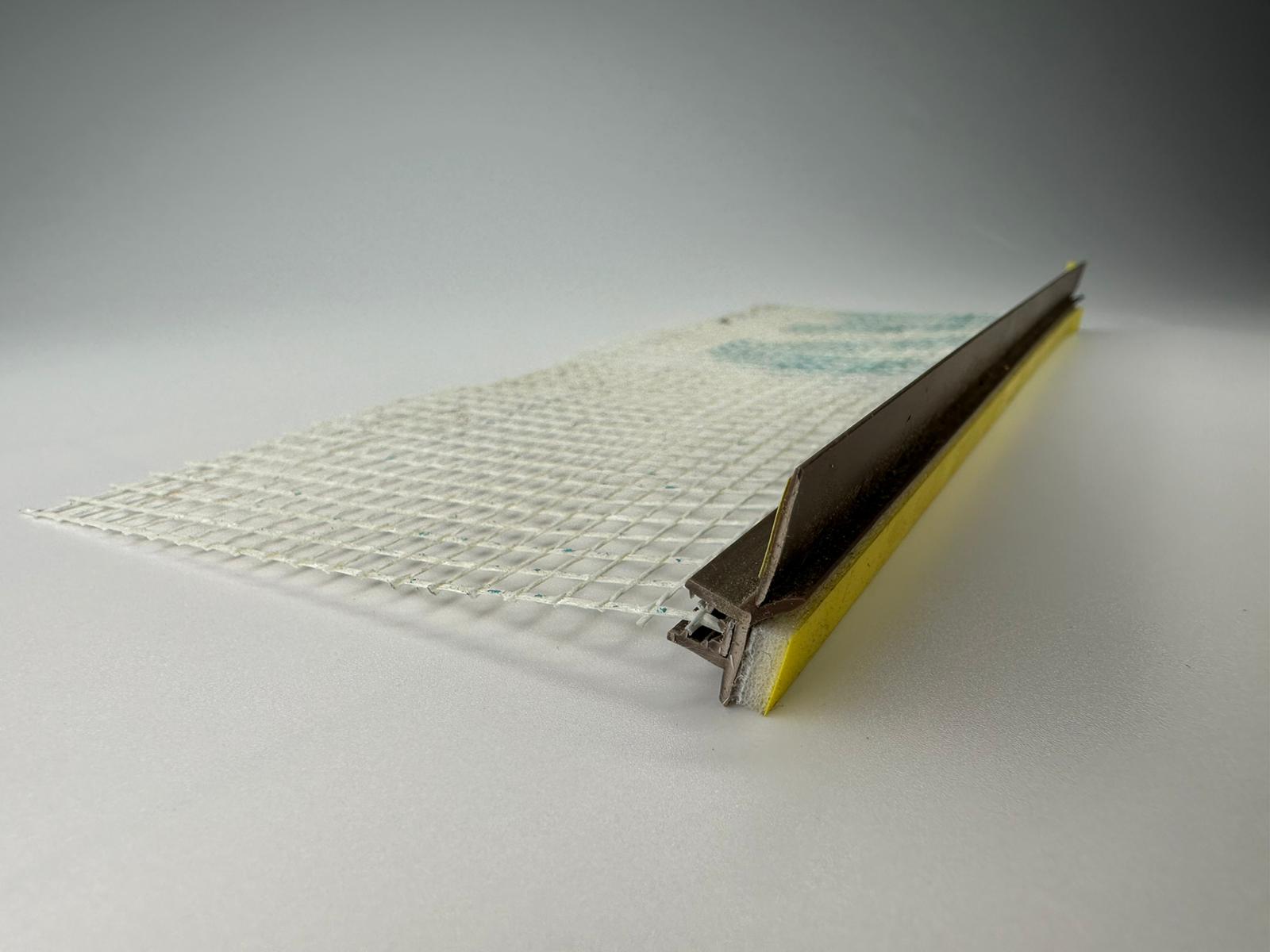 Listwa przyokienna – dylatacyjna CIEMNY ORZECH 6/3mm z uszczelką i siatką 10 cm 2,5m RAL 8014/20 siatka 145 gram