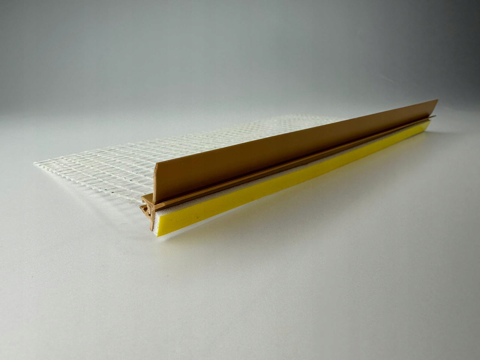 Listwa przyokienna – dylatacyjna ZŁOTY DĄB 6/3mm z uszczelką i siatką 10 cm 1,5m RAL 8001/20 siatka 145 gram