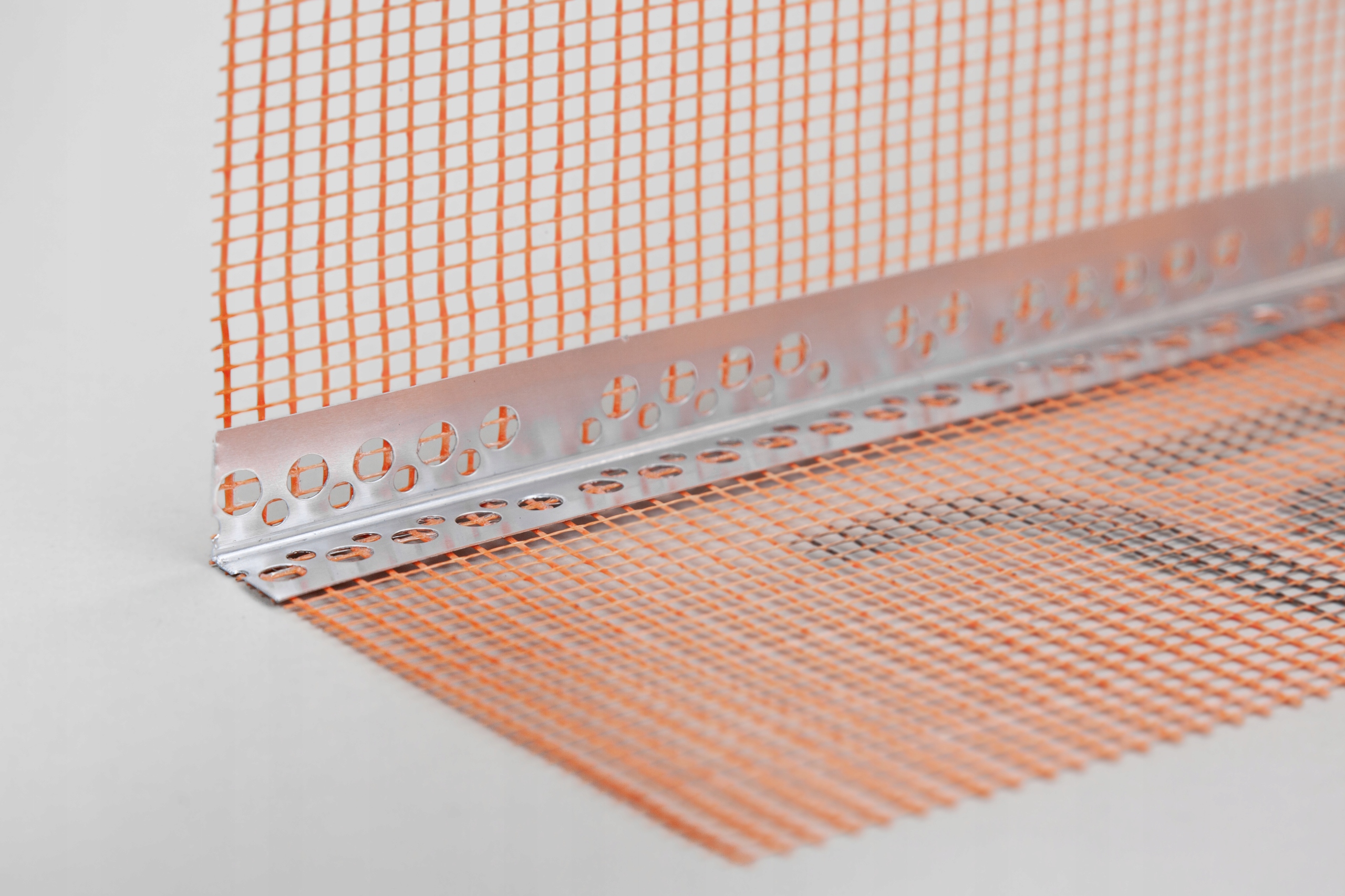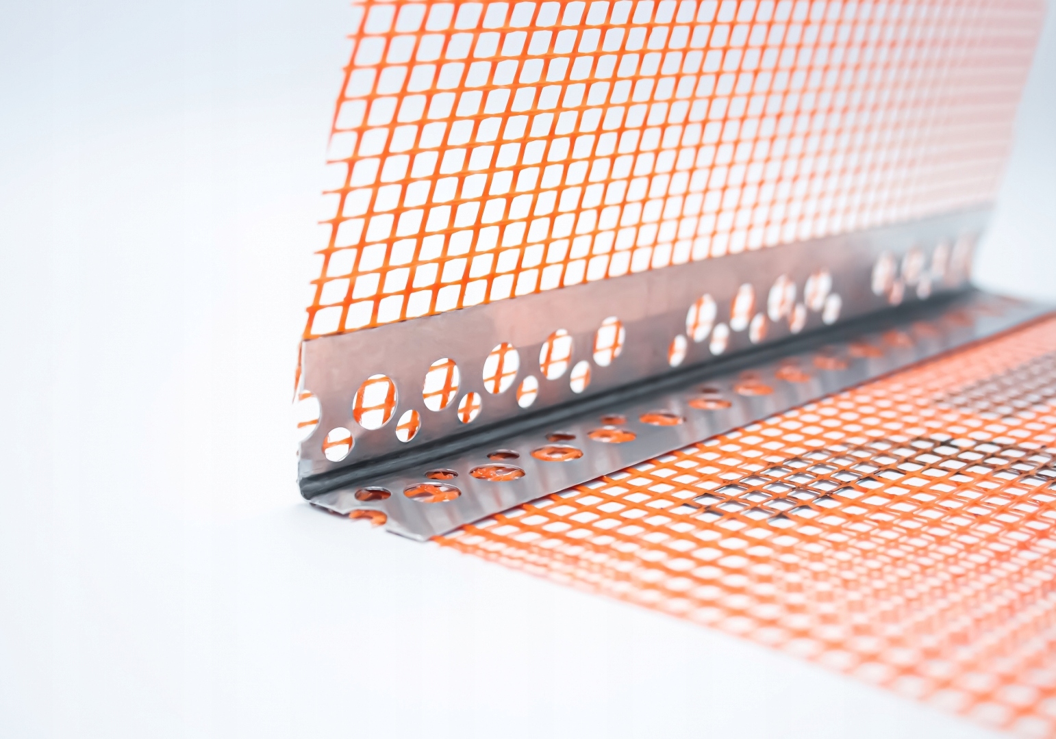 Narożnik z siatką wykorzystywany jest do wykonywania wykończenia i zabezpieczenia krawędzi elewacji. Pozwala dzięki temu wyprowadzić kąty docieplanego budynku.